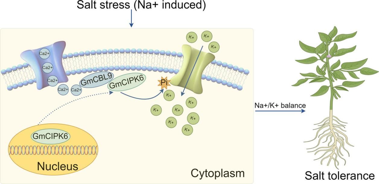 启航娱乐城 李海燕团队揭示钾离子通道蛋白GmAKT1调控大豆耐盐性的分子机制