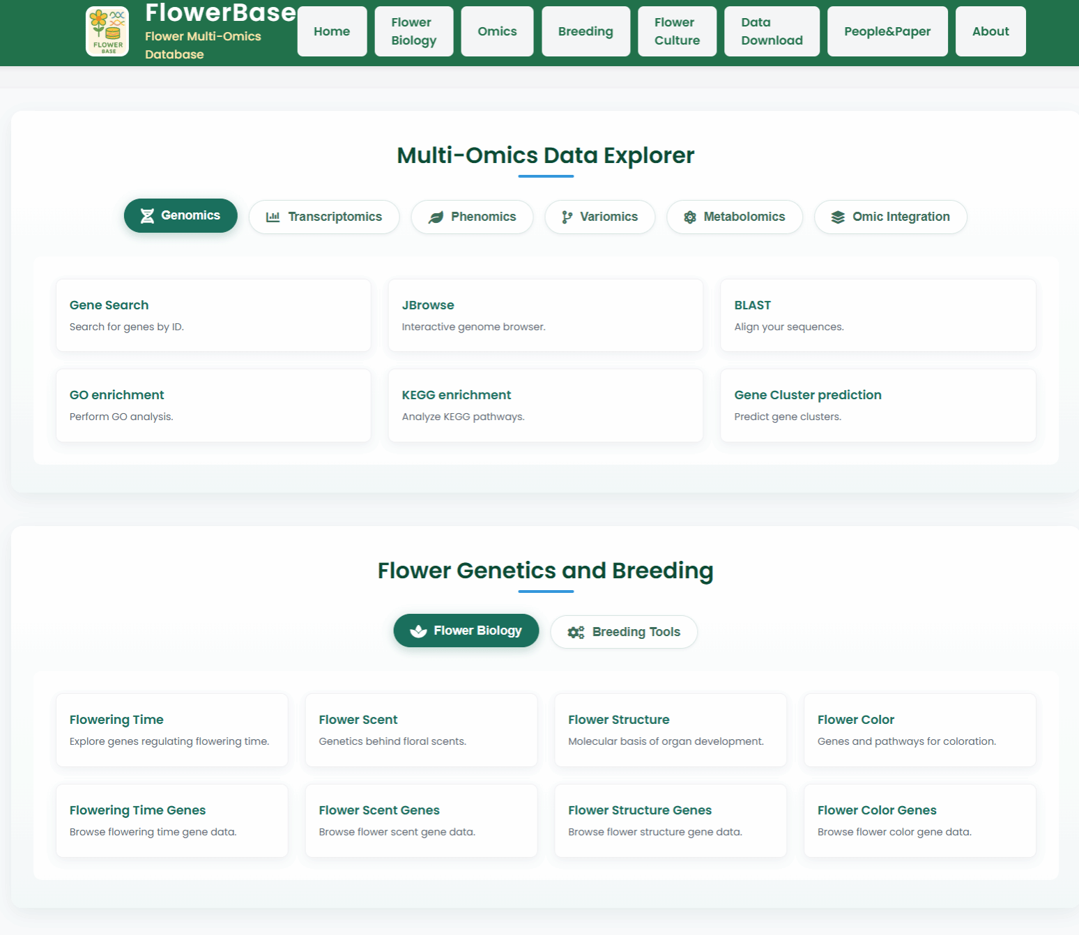 数据库链接://bioinformatics.qihangylc.com/flowerbase