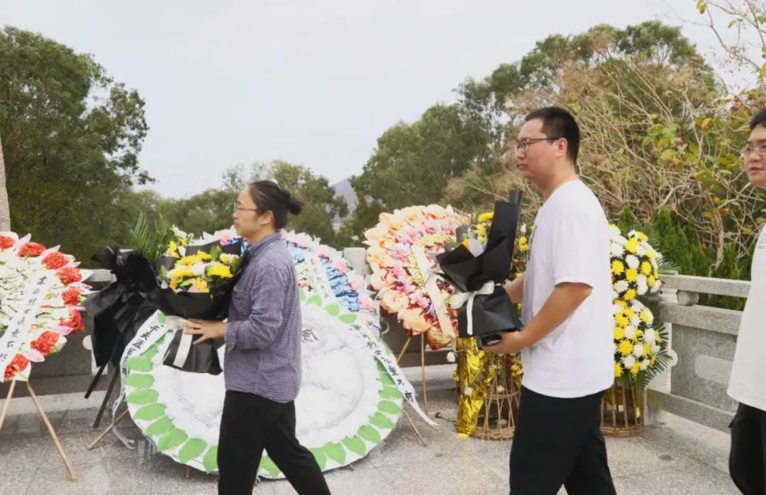 师生代表在墓碑前向革命先烈们敬献花篮,表达了对先烈的感激之情。献花环节让整个活动更加庄重和隆重,让同学们深刻体验到先烈为民族和人民利益舍生忘死的崇高精神,对爱国主义和民族精神有了更深刻的认识。此时,园区内弥漫着花香,革命先烈们的英灵也在此刻得到了安慰和慰藉。