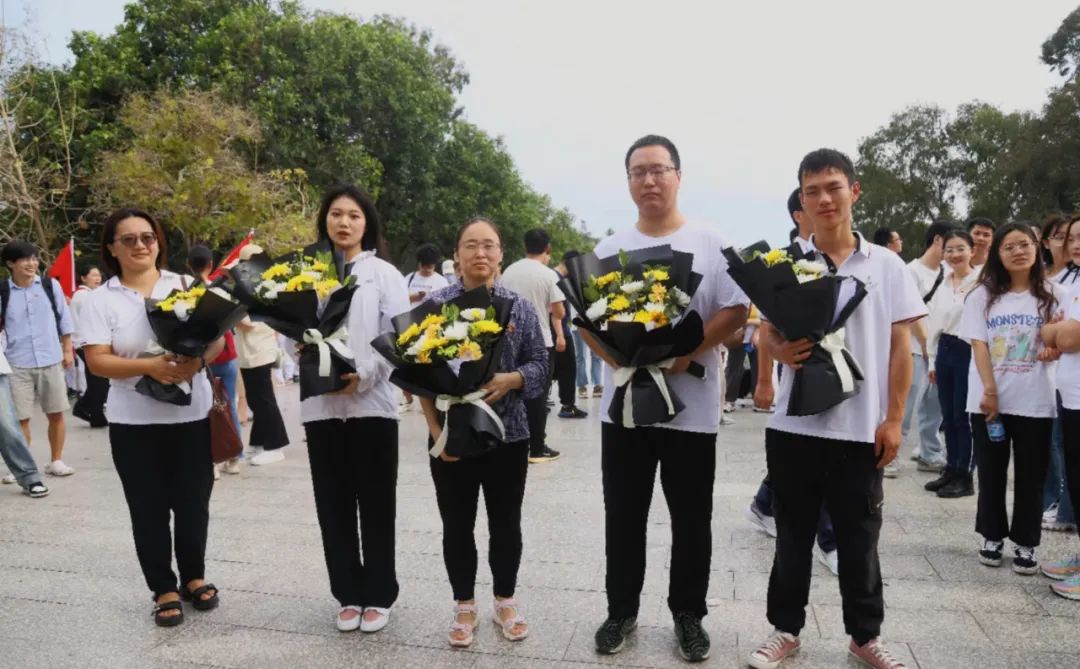 (下称“南繁院”)联合海南大学三亚研究院(下称“三亚院”)和热带海洋学院创新研究院(下称“热海院”)组织在崖学生前往梅山老区革命烈士陵园开展清明祭扫主题党团活动。南繁院党委副书记(副院长)钟祥涛带队,入驻团队教师代表11人,学生60余人,共计70余人参与本次活动。