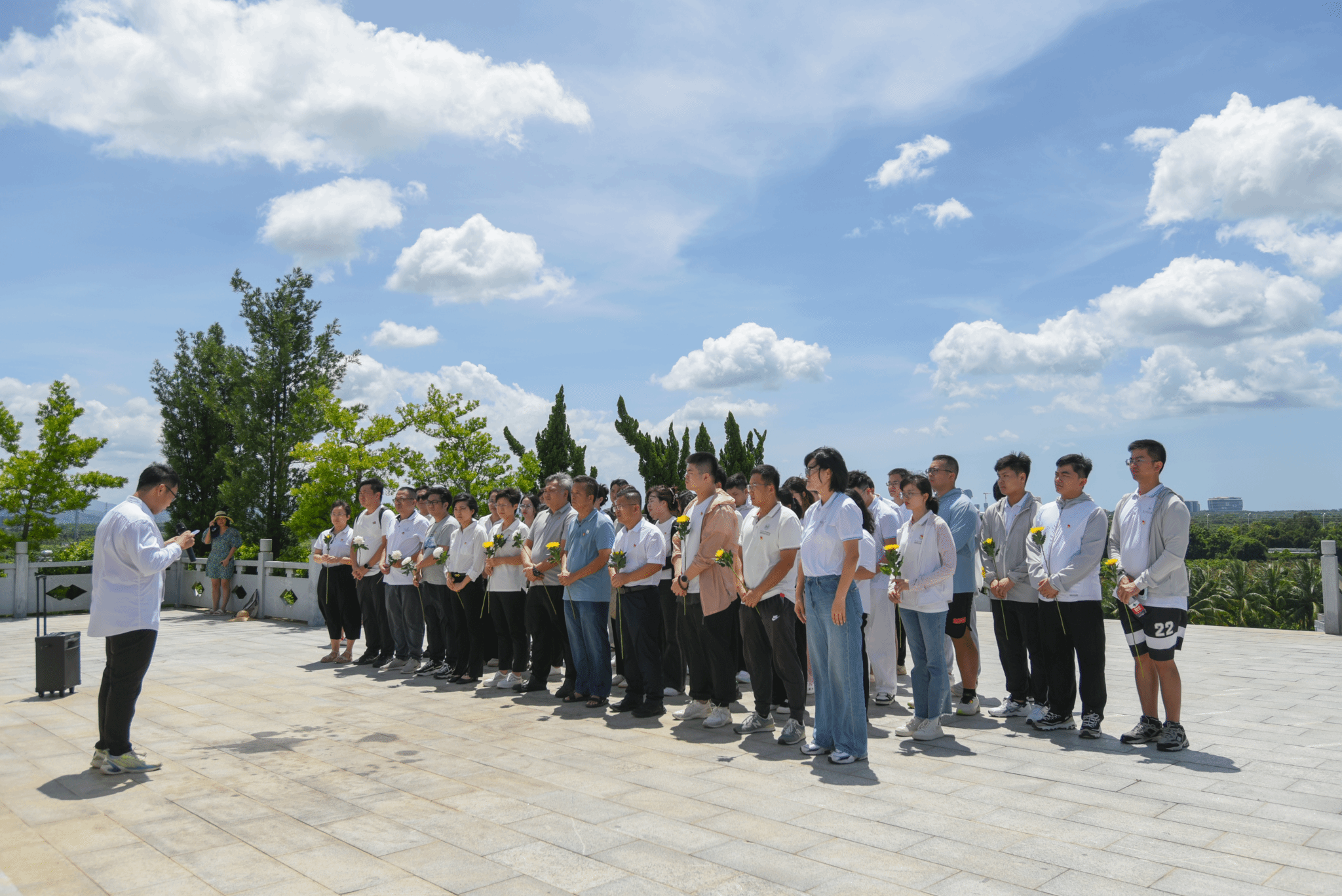 庄严的纪念园内,党员们拾阶而上,缓缓走向仲田岭革命烈士纪念碑,将花束整齐摆放于碑座前,进行默哀表达哀思。