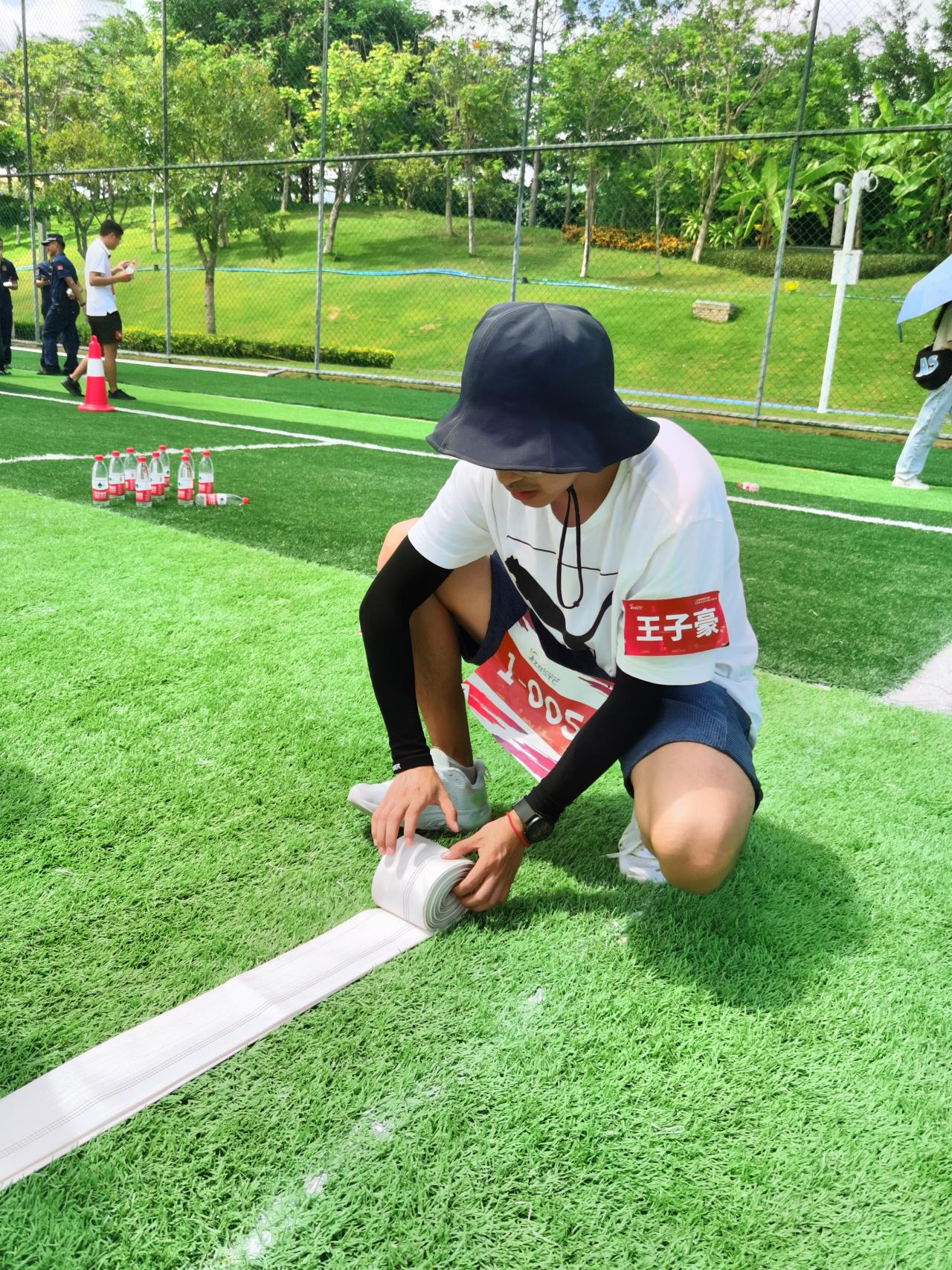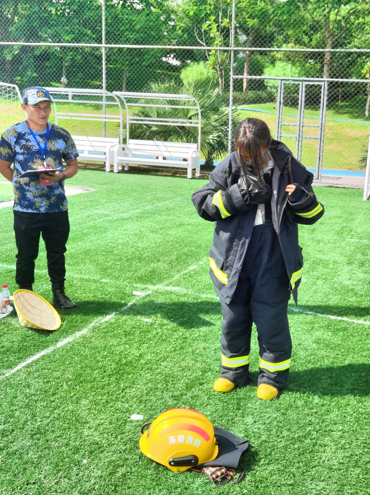在消防技能比拼环节,通过PPE穿戴接力、灭火器使用接力、消防分类水枪大作战、消防逃生绳结接力等活动,强化学生们对消防设施的使用操作及在发生危险时的自护自救能力。