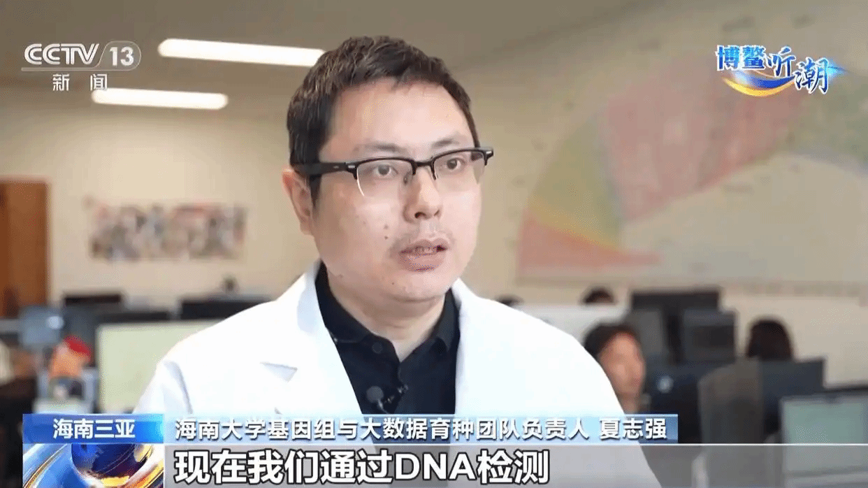 海南大学基因组与大数据育种团队负责人 夏志强:传统育种就是把材料种到地里,等苗长大了之后,才能进行筛选。现在我们通过DNA检测,在小苗期间,就可以对它进行筛选,加速育种周期,实现了从传统的“经验育种”到人工智能“精准育种”的迭代。