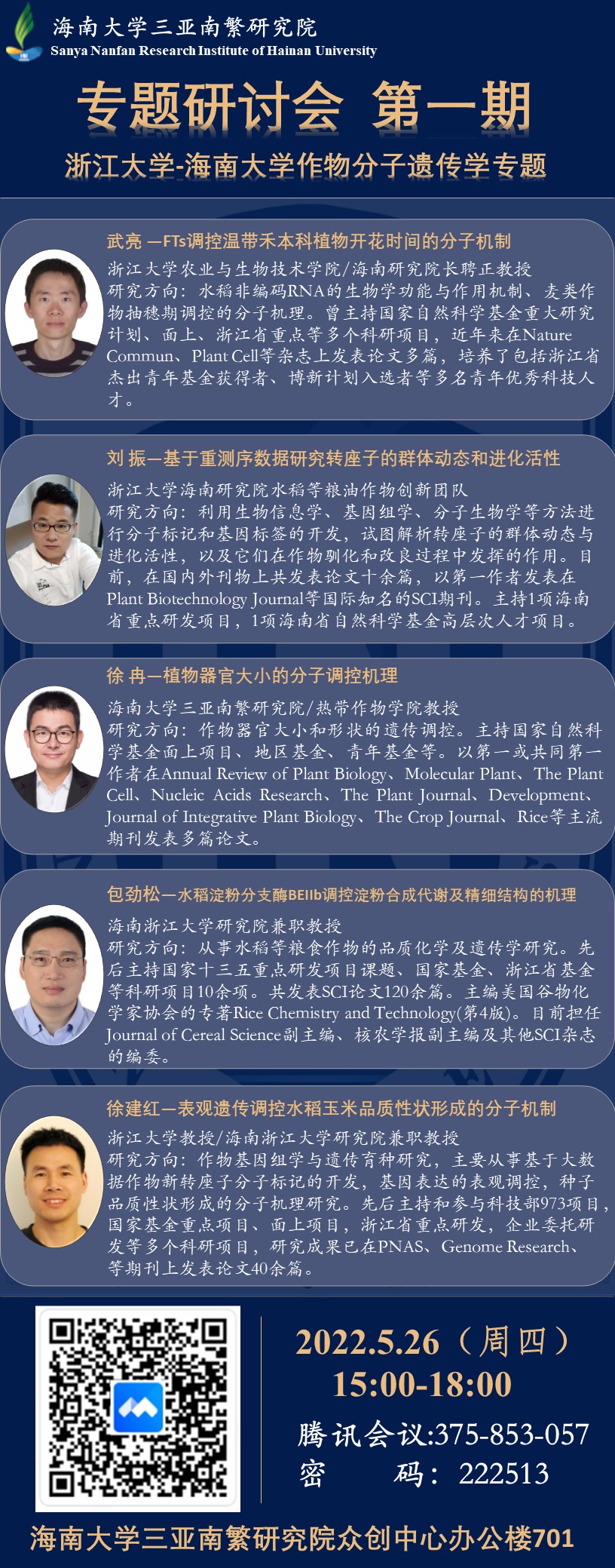 【学术研讨会预告】浙江大学-海南大学作物分子遗传学专题研讨会(海大南繁院专题研讨会第1期)