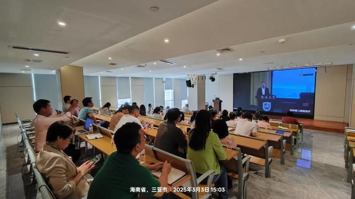 领导、各系主任以及全体教师在三亚校区众创中学910报告厅通过线上形式参与此次大会。