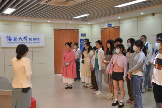 次日行程安排在海南大学校史馆和海南省史志馆。参与本次研学活动的同学多为研一新生,正值海南大学65年校庆之际,带领同学们参观校史馆,帮助同学更快的感受到海南大学的发展历史和成长进程,提升学生们对于海南大学的荣誉感和归属感。