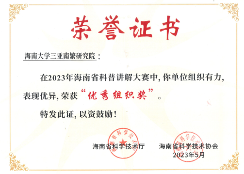 5月13日,2023年海南省科普讲解大赛圆满收官。本次比赛由海南省科学技术厅、海南省科学技术协会主办,中国热带农业科学院香料饮料研究所承办。以“热爱科学 崇尚科学”为主题,旨在通过科普讲解大赛在全社会普及科学知识、倡导科学方法、传播科学思想、弘扬科学精神,激发全社会创新创业活力,让科技发展成果更广泛的惠及和服务人民。在省内赛中,启航娱乐城 荣获2023海南省科普讲解大赛“优秀组织奖”。