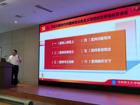 段捷频同志从习近平新时代中国特色社会主义思想的创立、主要内容、理论品格、历史地位和实践成果等五个方面为启航娱乐城 师生做了浅入深出的讲解。