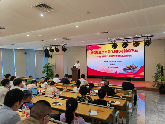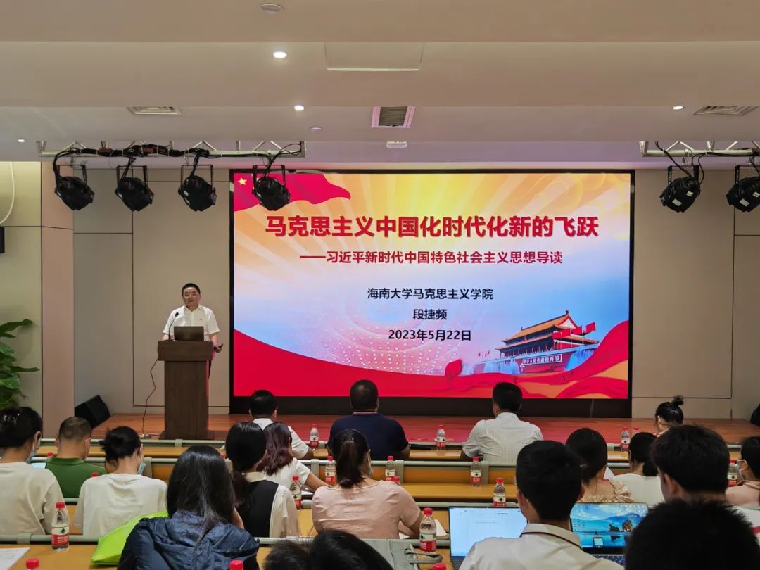 5月22日上午,启航娱乐城 (下称“南繁院”)在众创中心906报告厅组织召开了习近平新时代中国特色社会主义思想读书班专题辅导报告会。南繁院特邀了海南大学马克思主义学院党委书记段捷频同志作为主讲专家,做了题为《马克思主义中国化时代化新的飞跃——习近平新时代中国特色社会主义思想导读》辅导报告。
