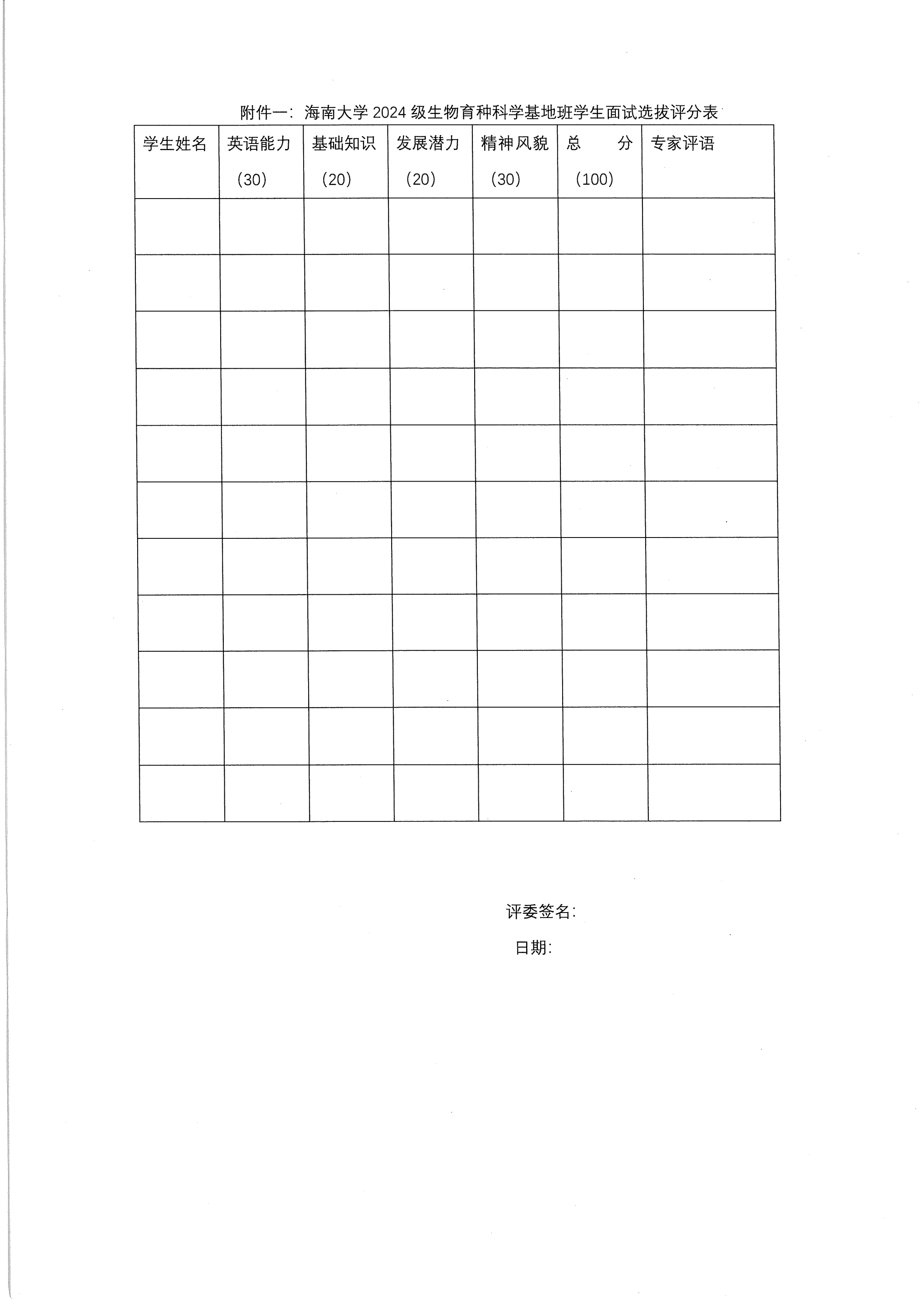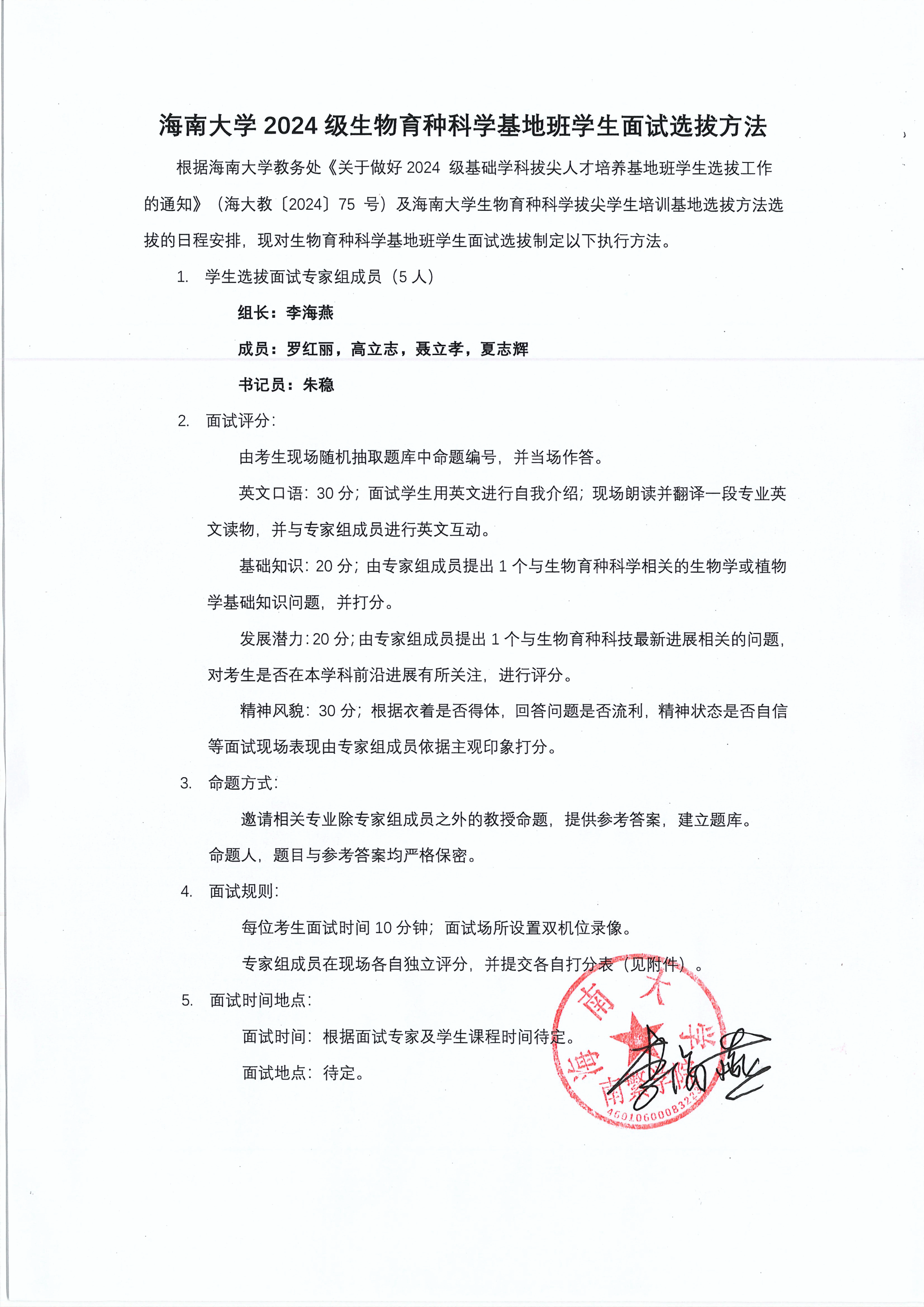 海南大学2024级生物育种科学基地班学生面试选拔方法